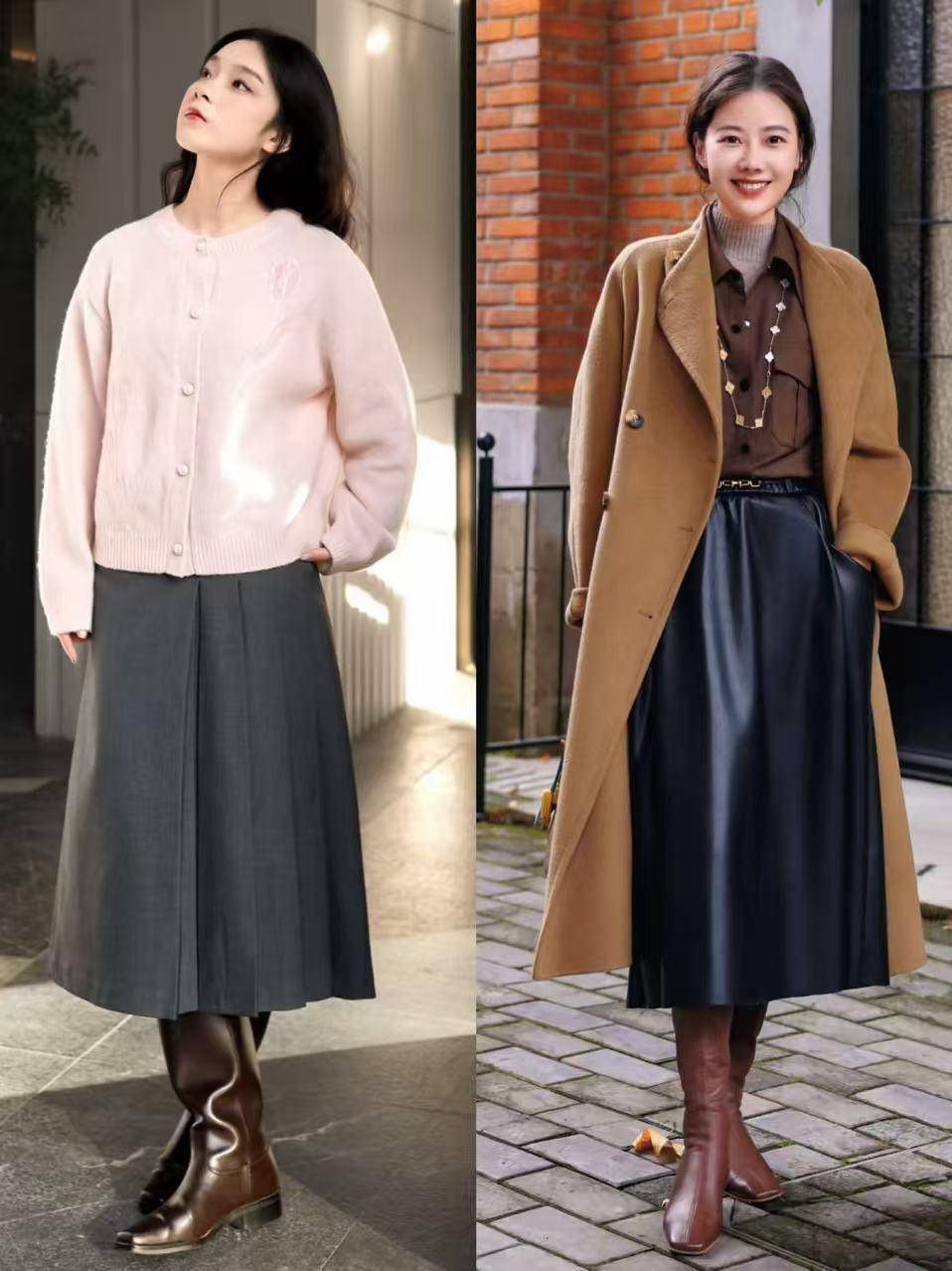 第三章节:裙子搭配长靴和短靴更有气质tips①中筒靴搭配半身裙